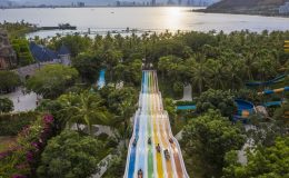 Du khách có thể trải nghiệm hơn 20 trò chơi như máng trượt 6 làn, tàu lượn... tại hệ thống công viên nước Nha Trang,...